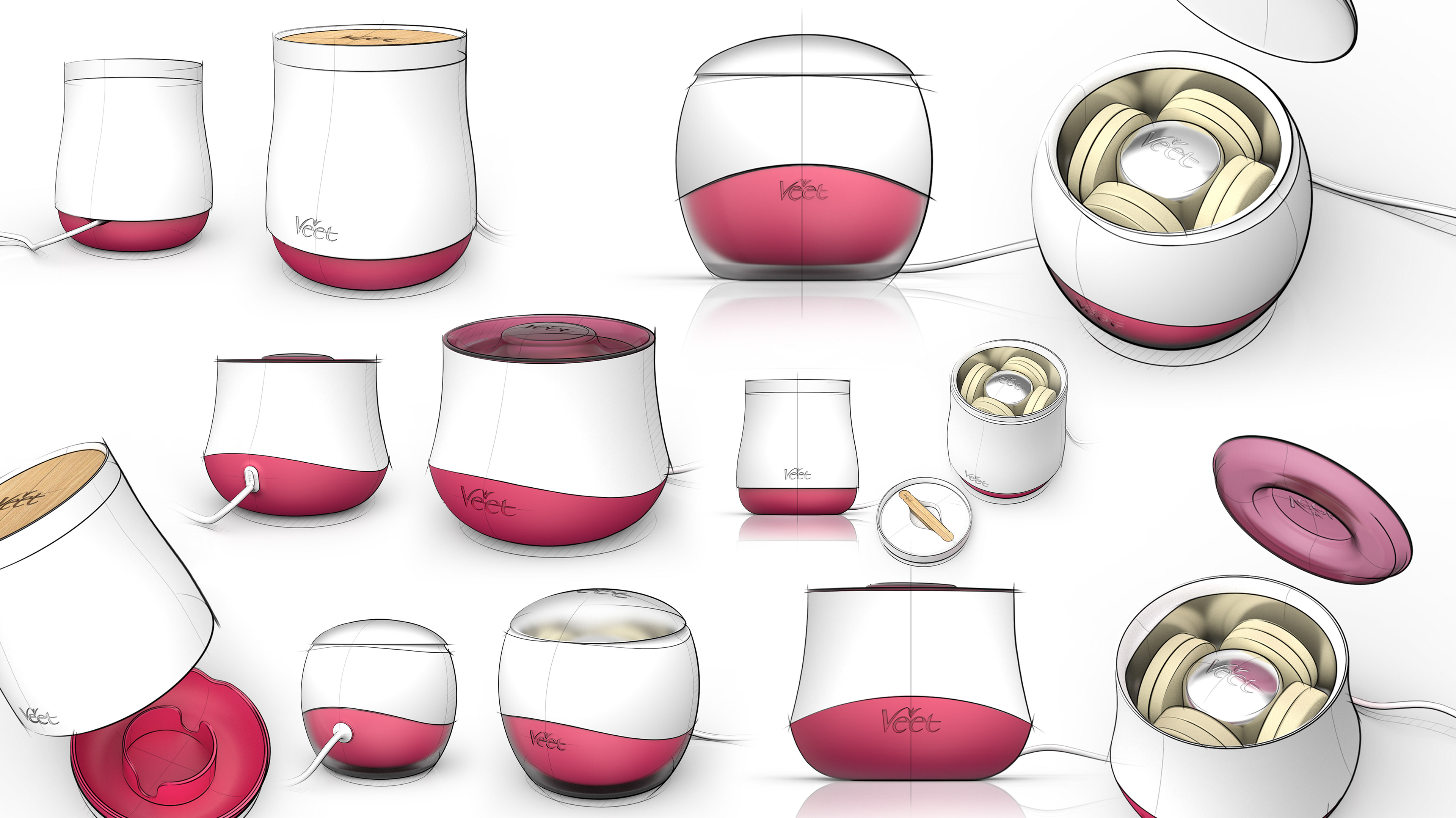 Salon-perfect smoothness at home. The Veet SpaWax is an innovative product within the personal care category. It is an electronic wax warming device designed to offer the user a beauty salon treatment in the comfort of their own home. The product has been developed to utilize the current Veet hard wax discs by warming, melting and retaining them at the correct temperature to achieve optimum salon quality results. The device visual language has been designed with empathy to its context of use having the solidity and permanence of products in the personal care category while communicating beauty care cues and the Veet brand values through its material use and simple breaks in the device geometry. Designed during my time as Lead Industrial Designer @DCA Design International.